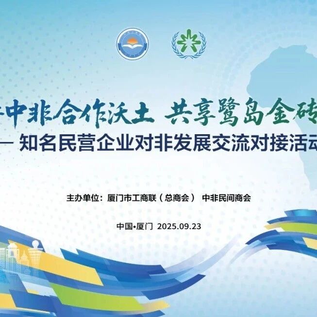 值此中非合作论坛北京峰会举办一周年之际,9月23日,厦门市工商联(总商会)联合全国工商联中非民间商会在厦门成功举办“深耕中非合作沃土·共享鹭岛金砖机遇——知名民营企业对非发展交流对接活动”,聚焦中非经贸合作与闽商海外发展机遇,搭建“一带一路”建设交流平台。厦门市工商联驻会领导与兼职副会长、副监事长企业家代表,市商务局相关领导,全国工商联中非民间商会会长吴严明、北京厦门企业商会名誉会长黄锦辉、副会